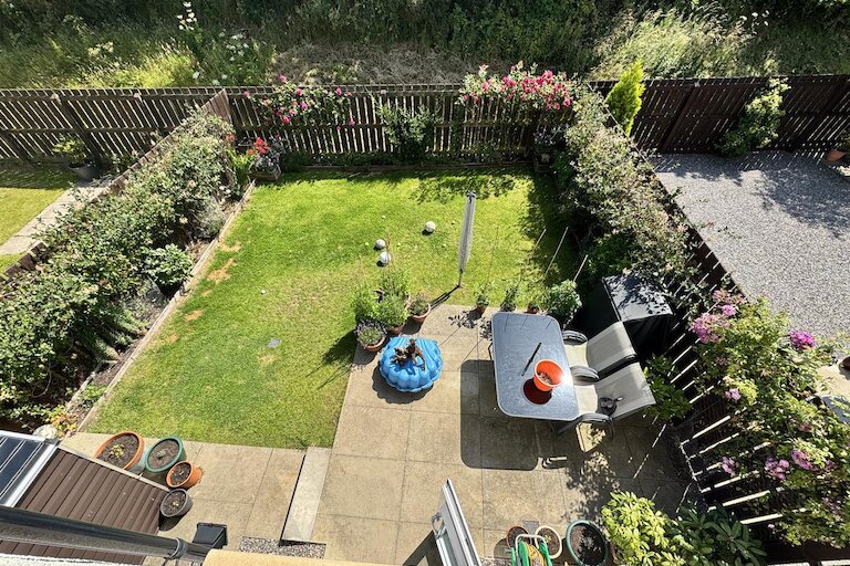 The enclosed private rear garden is mainly laid to lawn with shrubs around the borders. There is an outside water tap and clothes dryer.